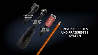 in dotazione: base, scalpello a sfera mini ø 15 mm, fresa a barilotto, fresa a tamburo, 1 ciascuno testine per levigatura a spirale per tipo K60 e K120, chiave esagonale